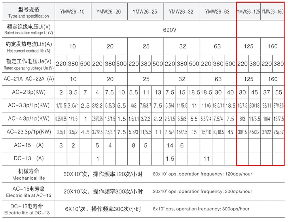 - พารามิเตอร์พิกัด: เหมาะสำหรับวงจร AC 50Hz/690V และ DC 240V โดยมีกระแสพิกัด 125A.