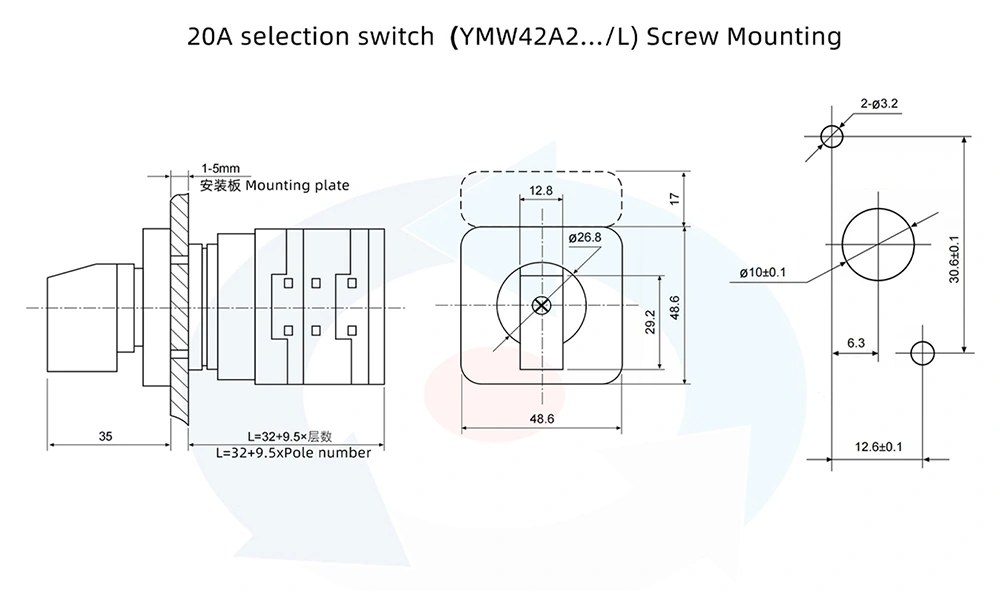 สวิตช์ลูกเบี้ยวยึดราง DIN หลายตำแหน่ง YAMING 20A เป็นส่วนประกอบควบคุมไฟฟ้าประสิทธิภาพสูงที่ออกแบบมาเพื่อการควบคุมวงจรที่แม่นยำ ออกแบบมาพร้อมกับการติดตั้งราง DIN ช่วยให้สามารถติดตั้งได้สะดวกและมีประสิทธิภาพ ปรับให้เข้ากับข้อกำหนดรูปแบบกะทัดรัดของอุปกรณ์ไฟฟ้าสมัยใหม่ สวิตช์นี้ใช้งานได้เฉพาะกับ AC 50Hz, 690V และต่ำกว่าเครื่องมือกลและอุปกรณ์ไฟฟ้าที่ควบคุมด้วยโปรแกรม CNC ซึ่งมีบทบาทสำคัญในลูปควบคุมไฟฟ้า