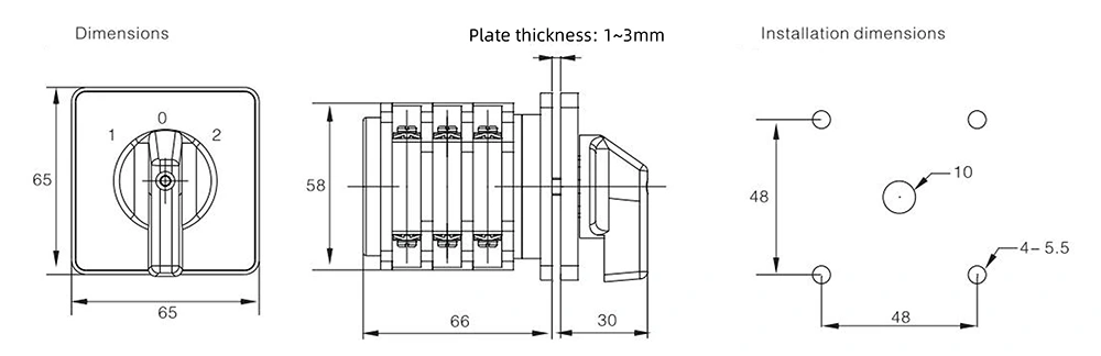สวิตช์เปลี่ยนการควบคุมกำลังสองตำแหน่ง 32A สามตำแหน่งยังทำหน้าที่เป็นสวิตช์ควบคุมวงจร สวิตช์อุปกรณ์ทดสอบ สวิตช์ควบคุมมอเตอร์ สวิตช์ควบคุมหลัก และสวิตช์เครื่องเชื่อม ครอบคลุมสถานการณ์การใช้งานที่หลากหลายเพื่อตอบสนองความต้องการของลูกค้าที่หลากหลาย