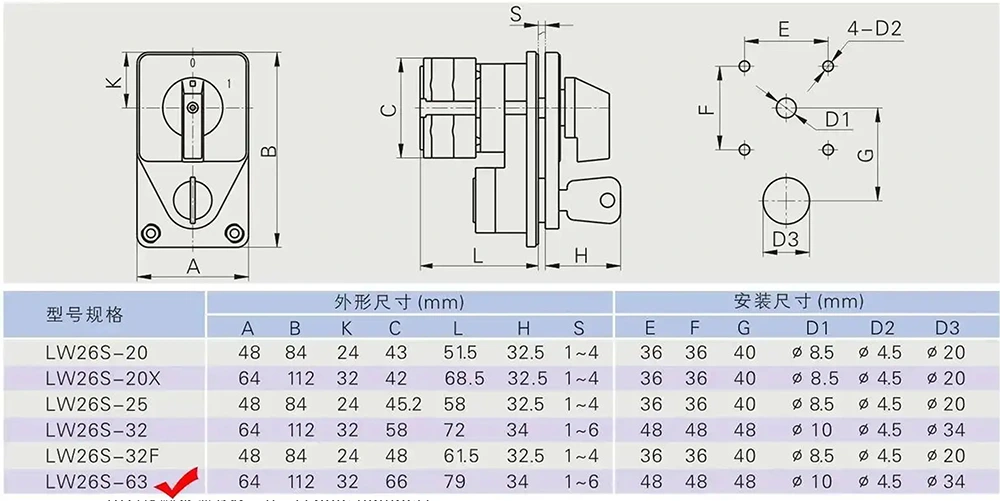 สวิตช์ลูกเบี้ยวเปลี่ยนคีย์ควบคุม LW26 63A มีตัวเลือกการจำแนกประเภทที่หลากหลายเพื่อตอบสนองความต้องการส่วนบุคคลในสถานการณ์การใช้งานที่แตกต่างกัน การจำแนกประเภทเฉพาะและขอบเขตการใช้งานมีดังนี้: