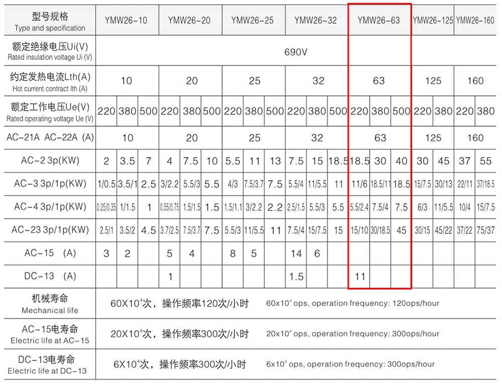 สวิตช์แยกการเชื่อมต่อแบบกุญแจ OFF-ON ของ YAMING 63A มีความสามารถในการปรับตัวต่อสิ่งแวดล้อมได้ดีเยี่ยม และทำงานได้เสถียรภายใต้สภาวะการทำงานปกติ พารามิเตอร์ทางเทคนิคเฉพาะมีดังนี้:
