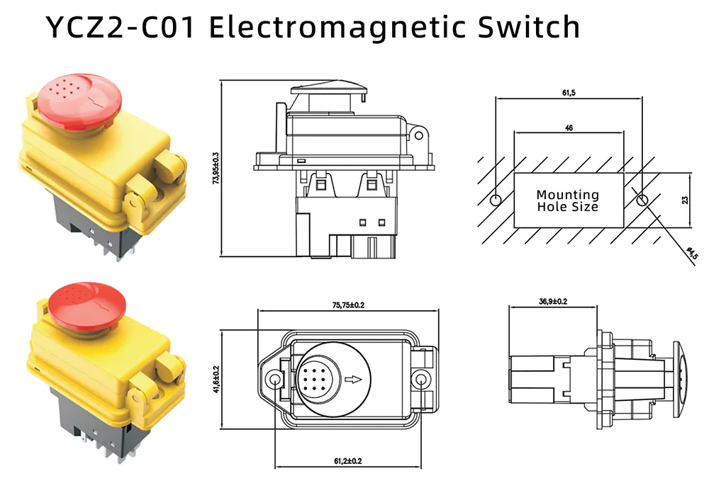 สวิตช์แม่เหล็กไฟฟ้าปุ่มกดฝาปิดฉุกเฉินขนาดเล็ก 8A ของเรา (รุ่น: YCZ2-C01) ออกแบบมาเพื่อสภาพแวดล้อมการควบคุมทางอุตสาหกรรม มีระบบป้องกันไฟดับในตัวและการป้องกันแรงดันไฟต่ำเพื่อป้องกันอุปกรณ์เสียหายอย่างไม่คาดคิด