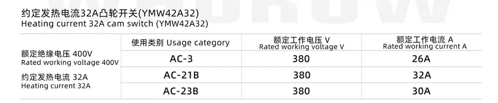 ซีรีส์ YMW42 มีจำหน่ายในข้อกำหนด 20A และ 32A พร้อมการออกแบบโครงสร้างที่ได้รับการปรับปรุงเพื่อให้มั่นใจถึงการทำงานที่แม่นยำและมีเสถียรภาพ: