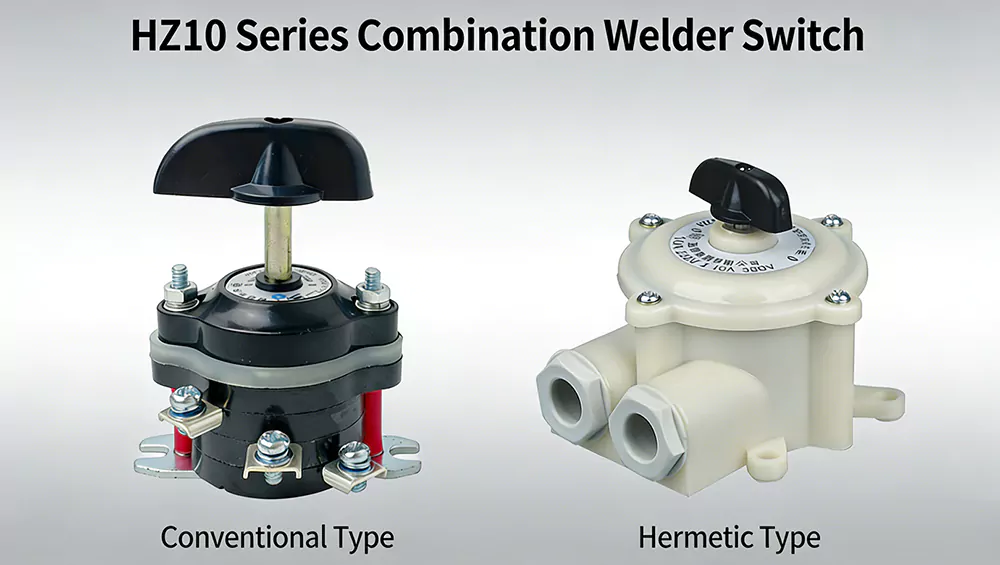 สวิตช์ลูกเบี้ยวรวมชนิดสุญญากาศ HZ10-M 10A ควบคุมกระแสการเชื่อมที่ต่ำกว่า 100A ทำหน้าที่เป็นสวิตช์วงจรหลักและเครื่องเปลี่ยนวงจรเสริมสำหรับอุปกรณ์ไฟฟ้า เหมาะสำหรับ AC 50/60 Hz ถึง 380V